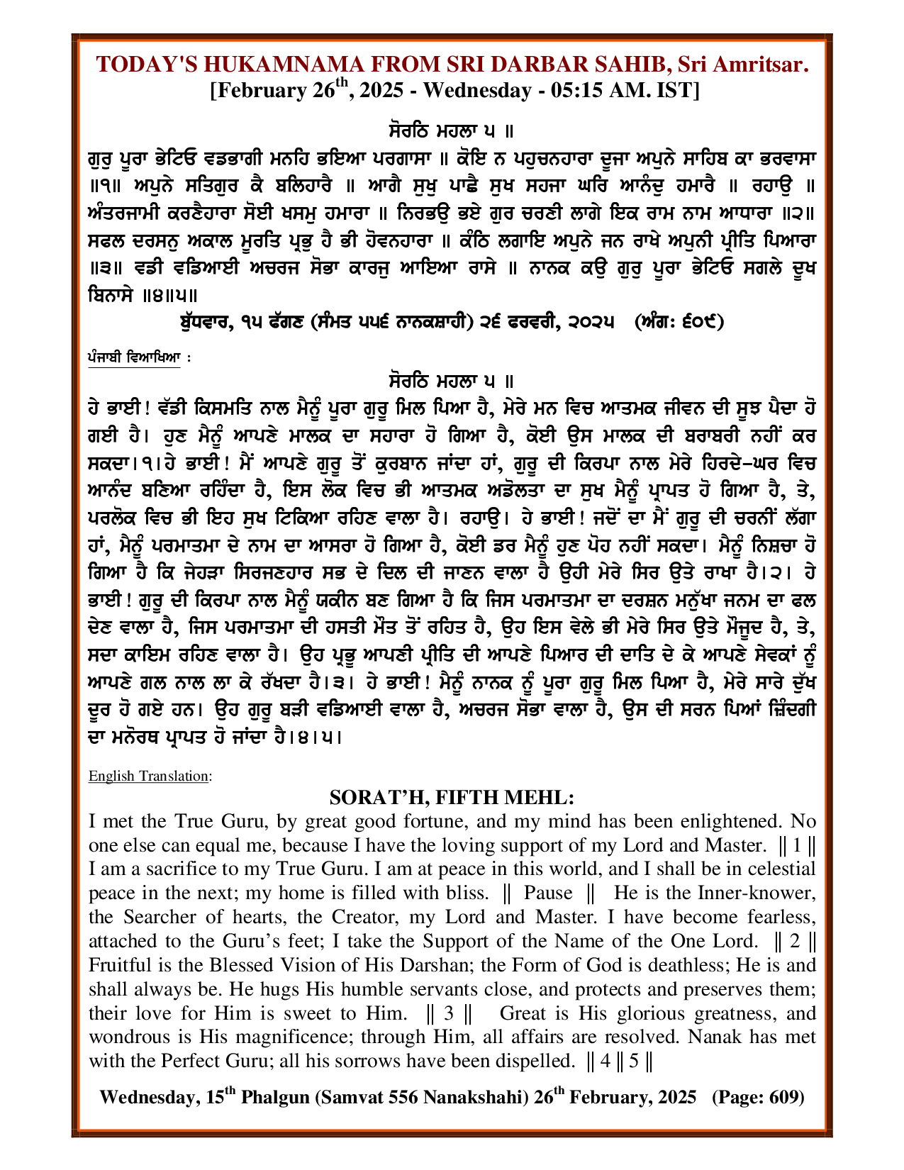Source : SGPC Post navigation Today’s Daily Mukhwak Sri Darbar Saheb – February 25th, 2025 Today’s Daily Mukhwak Sri Darbar Saheb – February 27th, 2025