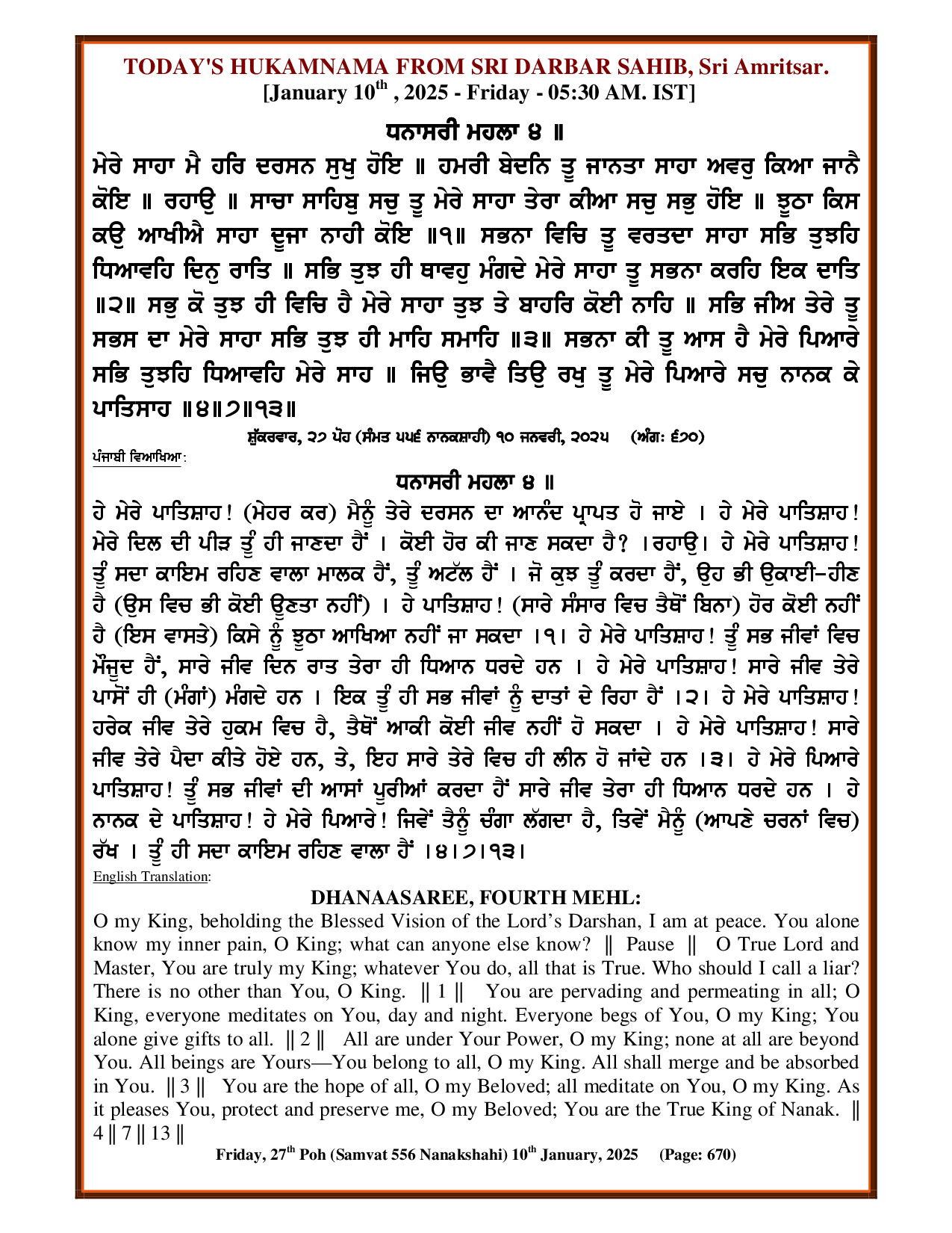 Source : SGPC Post navigation Today’s Daily Mukhwak Sri Darbar Saheb – January 9th, 2025 Today’s Daily Mukhwak Sri Darbar Saheb – January 11th, 2025