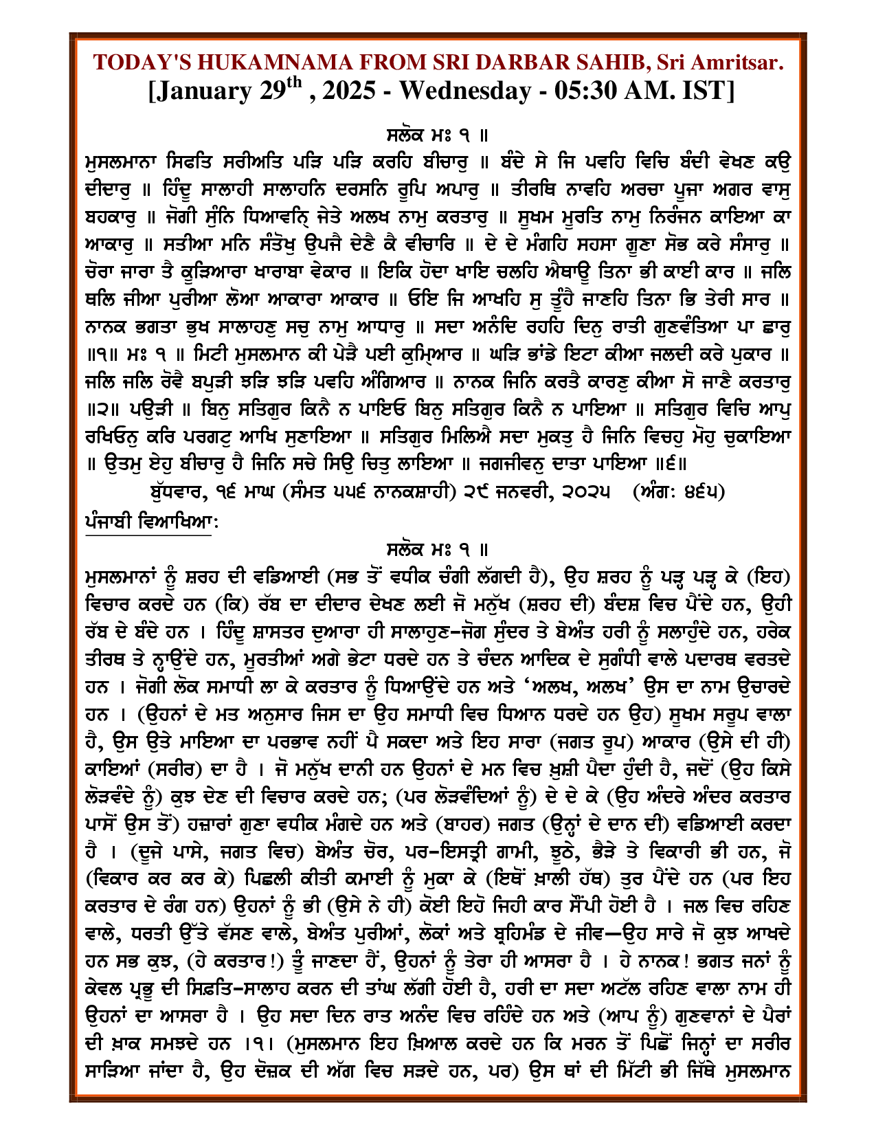 Source : SGPC Post navigation Today’s Daily Mukhwak Sri Darbar Saheb – January 28th, 2025 Today’s Daily Mukhwak Sri Darbar Saheb – January 30th, 2025
