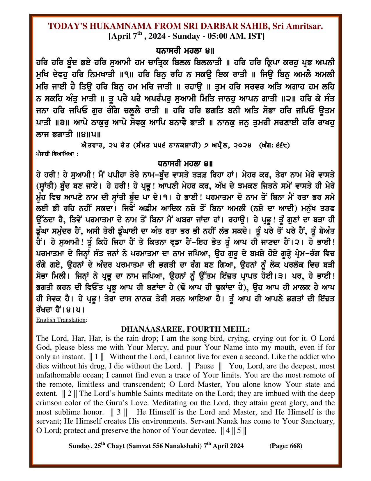 Source : SGPC Post navigation Today’s MUKHWAK Sri Darbar Saheb Amritsar – April 6th, 2024 Today’s MUKHWAK Sri Darbar Saheb Amritsar – April 8th, 2024