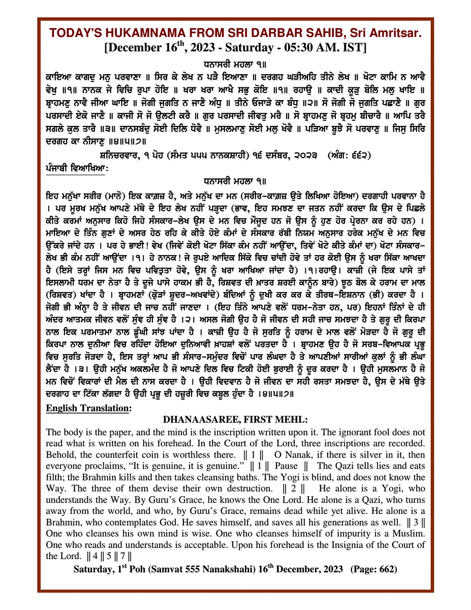 Source : SGPC Post navigation Today’s MUKHWAK Sri Darbar Saheb Amritsar – December 15th, 2023 Today’s MUKHWAK Sri Darbar Saheb Amritsar – December 17th, 2023