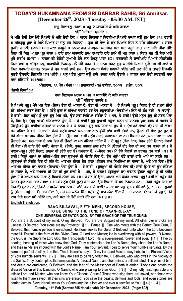 Source : SGPC Post navigation Today’s MUKHWAK Sri Darbar Saheb Amritsar – December 25th, 2023 Today’s MUKHWAK Sri Darbar Saheb Amritsar – December 27th, 2023