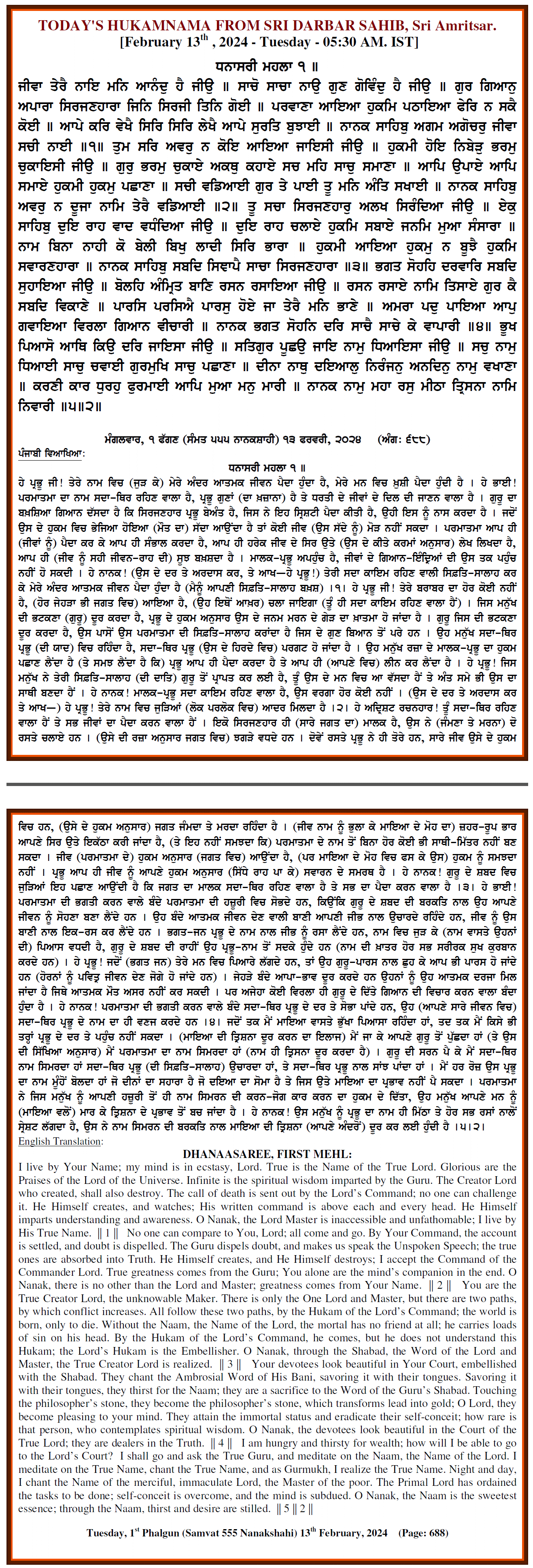 Source : SGPC Post navigation Today’s MUKHWAK Sri Darbar Saheb Amritsar – February 12th, 2024 Today’s MUKHWAK Sri Darbar Saheb Amritsar – February 14th, 2024