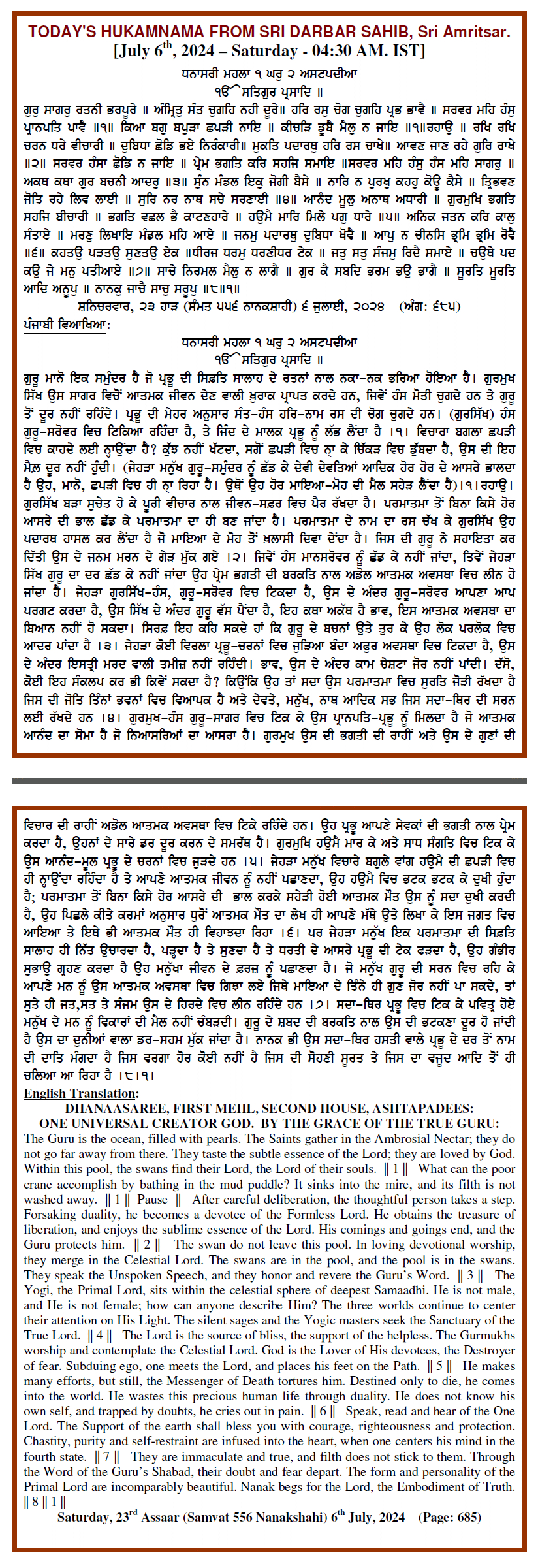 Source : SGPC Post navigation Today’s MUKHWAK Sri Darbar Saheb Amritsar – July 5th, 2024 Today’s MUKHWAK Sri Darbar Saheb Amritsar – July 7th, 2024