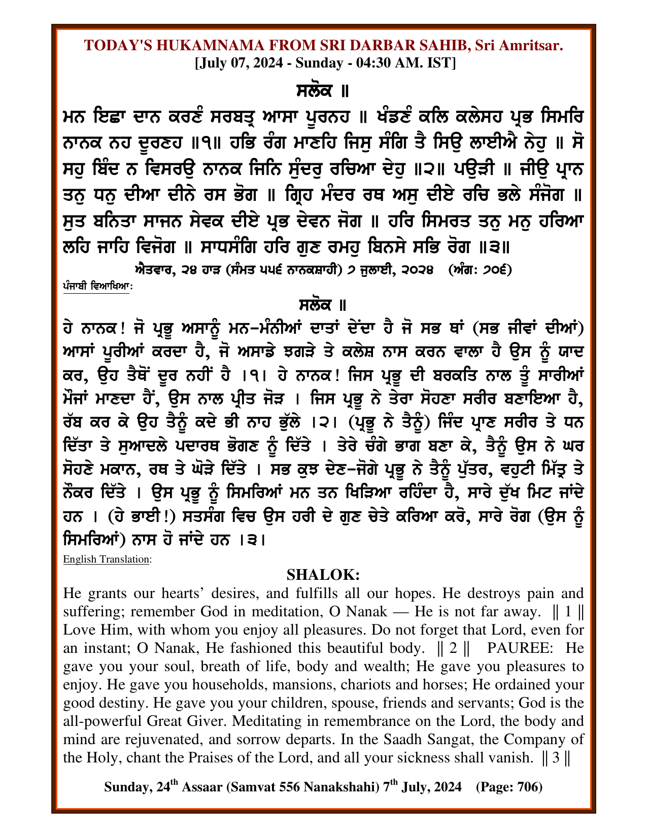 Source : SGPC Post navigation Today’s MUKHWAK Sri Darbar Saheb Amritsar – July 6th, 2024 Today’s MUKHWAK Sri Darbar Saheb Amritsar – July 8th, 2024