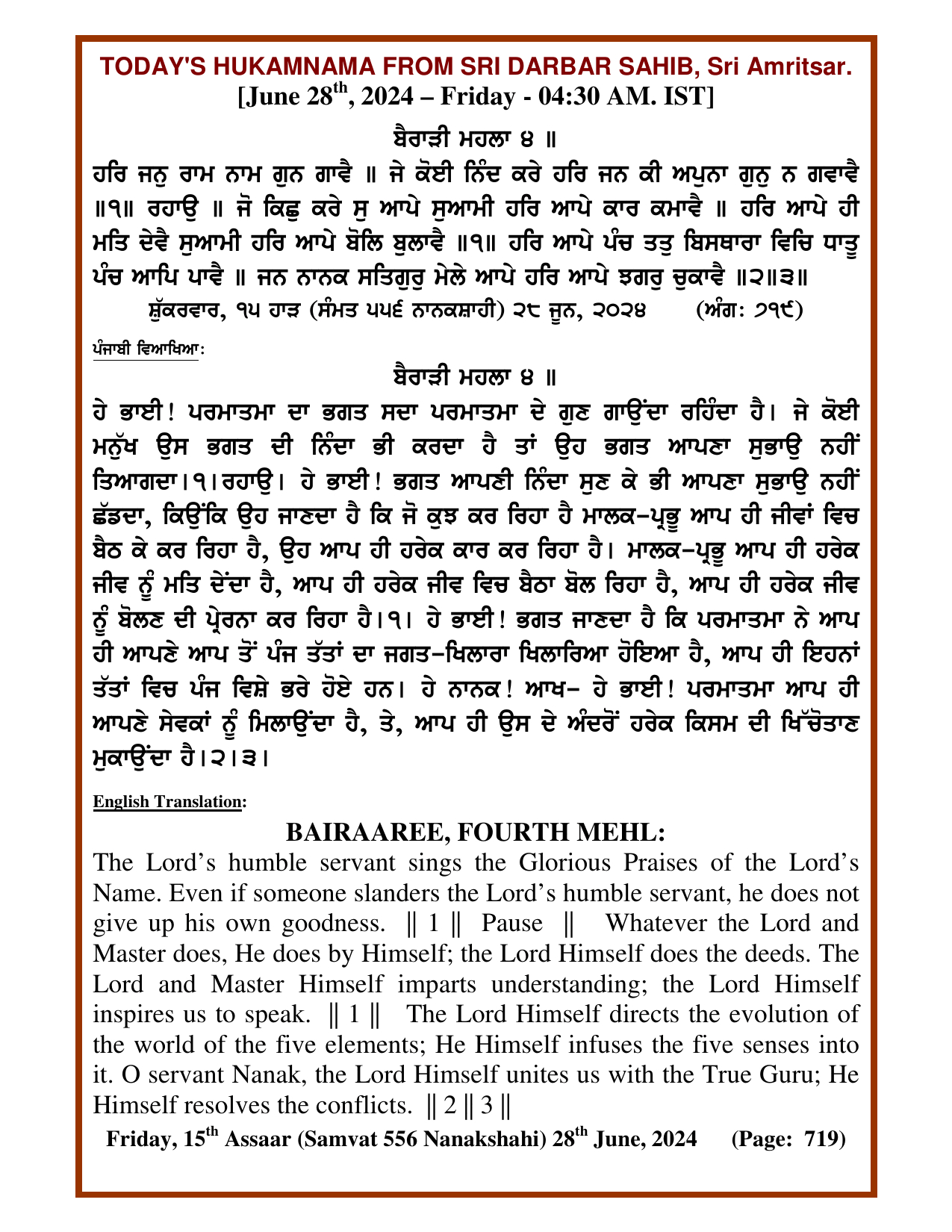 Source : SGPC Post navigation Today’s MUKHWAK Sri Darbar Saheb Amritsar – June 27th, 2024 Today’s MUKHWAK Sri Darbar Saheb Amritsar – June 29th, 2024