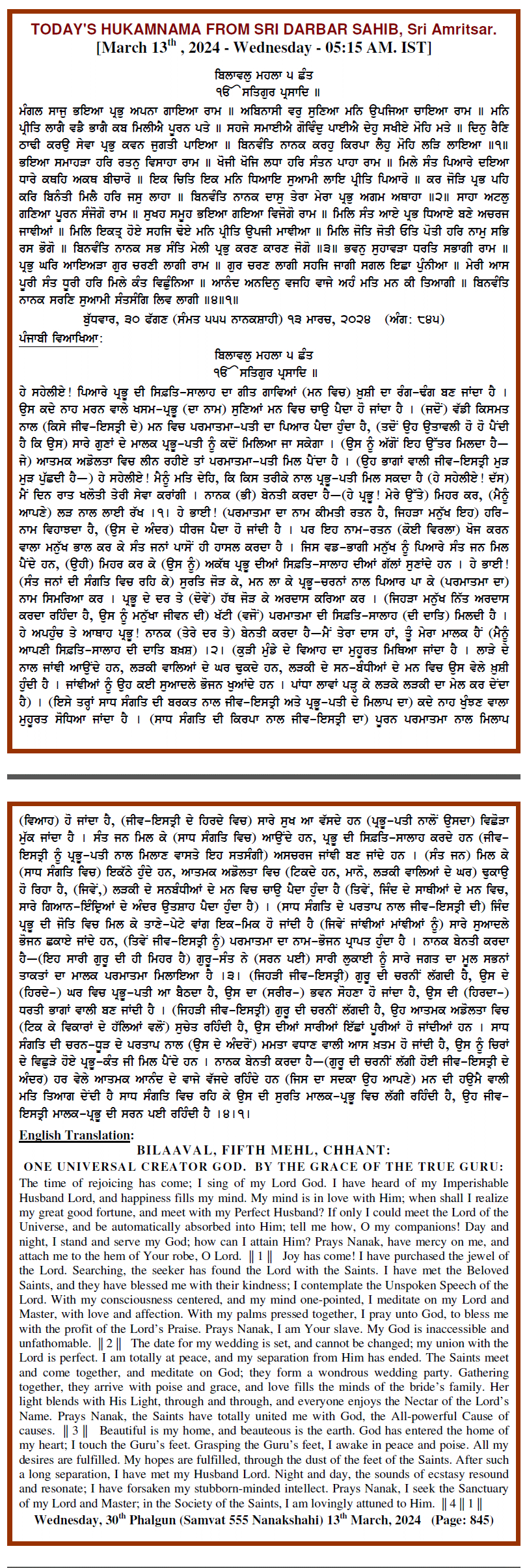 Source : SGPC Post navigation Today’s MUKHWAK Sri Darbar Saheb Amritsar – March 11th, 2024 Today’s MUKHWAK Sri Darbar Saheb Amritsar – March 14th, 2024