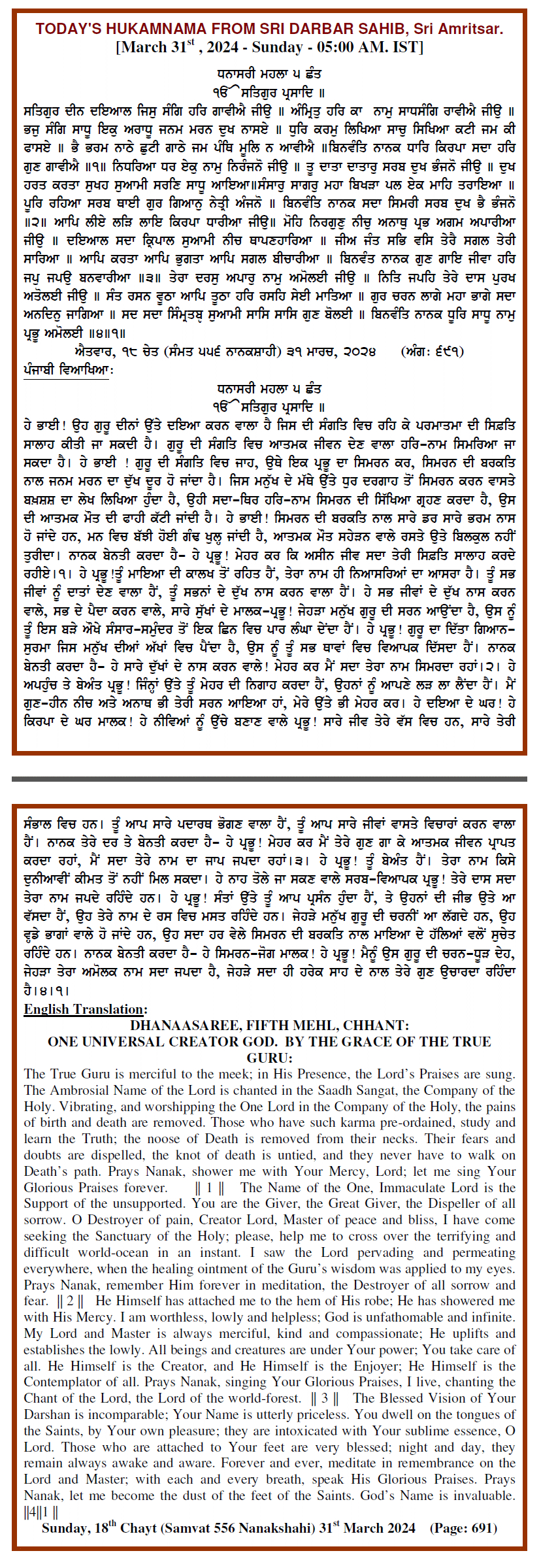 Source : SGPC Post navigation Today’s MUKHWAK Sri Darbar Saheb Amritsar – March 30th, 2024 Today’s MUKHWAK Sri Darbar Saheb Amritsar – April 1st, 2024