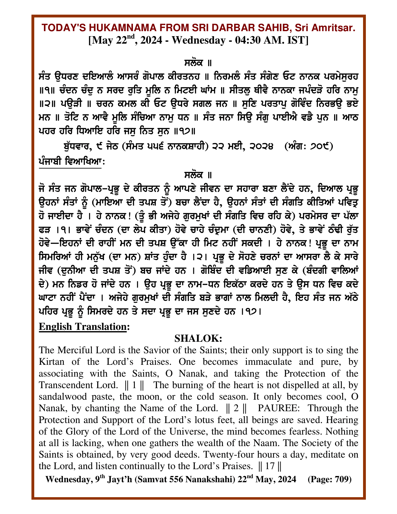 Source : SGPC Post navigation Today’s MUKHWAK Sri Darbar Saheb Amritsar – May 21st, 2024 Today’s MUKHWAK Sri Darbar Saheb Amritsar – May 23rd, 2024